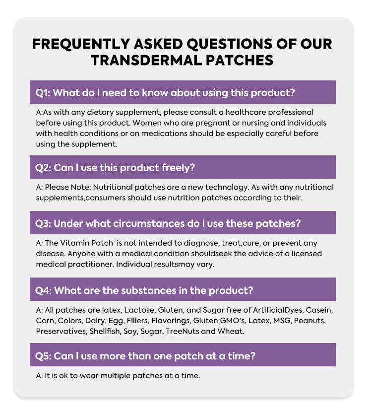 Our patches are designed as a dietary supplement and contain carefully selected ingredients. As with any supplement, it's important to check the ingredients list before using the product. If you have any doubts or specific health questions, we recommend consulting a healthcare professional.