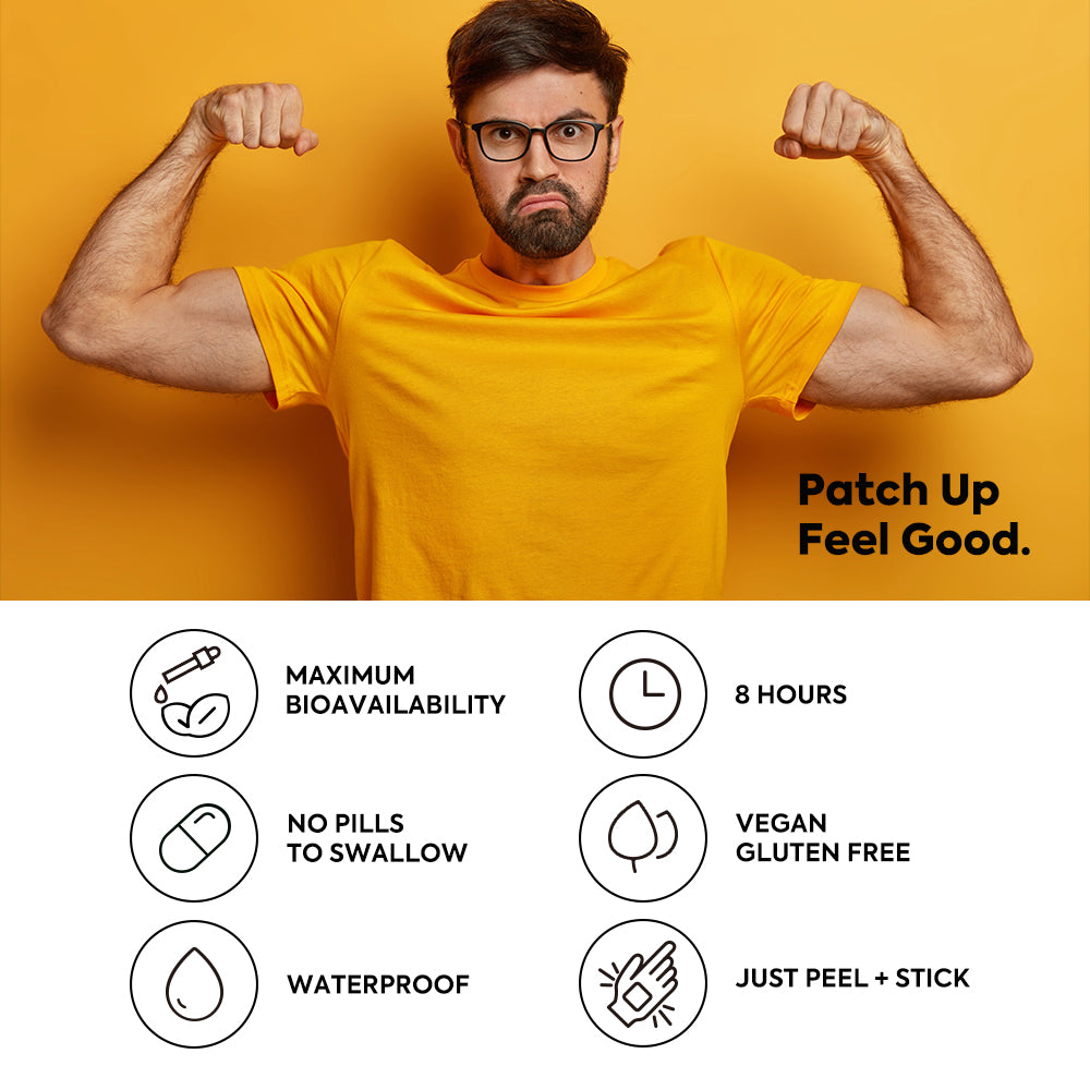 Transdermal patches are applied to clean, dry skin. The active ingredients are absorbed through the skin and enter the bloodstream directly. This ensures even delivery throughout the day, without energy dips. Apply the patch in the morning and wear it for up to 8 hours.